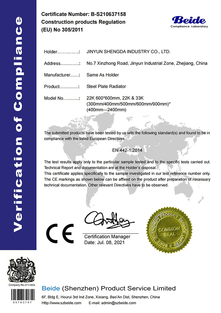 37158-CPR-Certificate 鋼制板散熱器