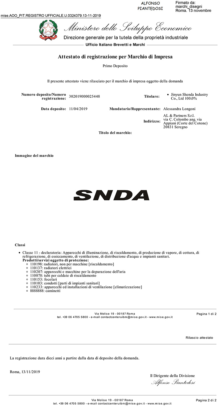 SNDA-意大利證書-第11類