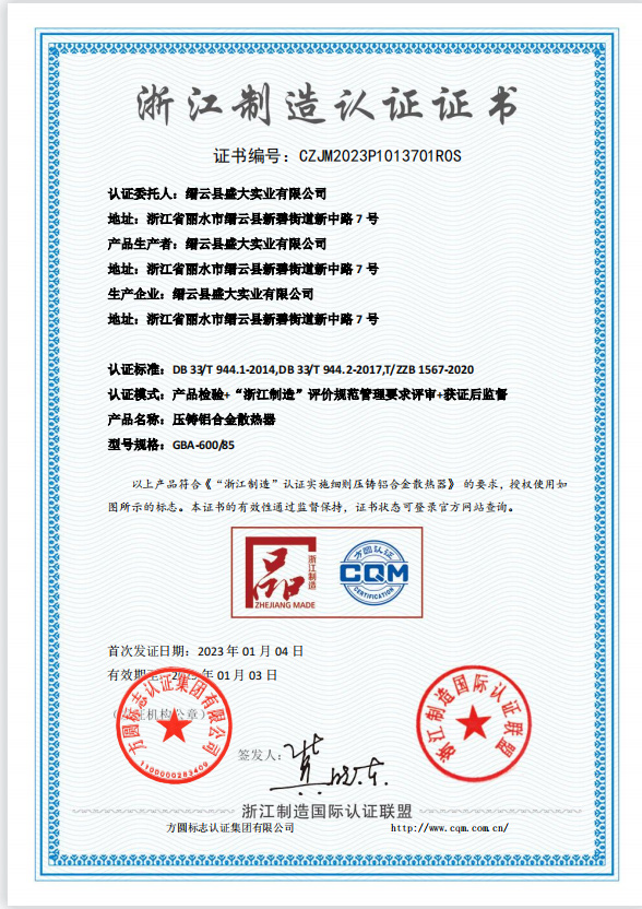 浙江制造認證證書