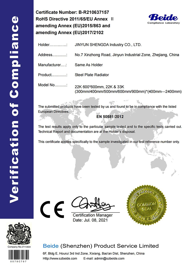 37157-ROHS-Certificate 鋼制板散熱器