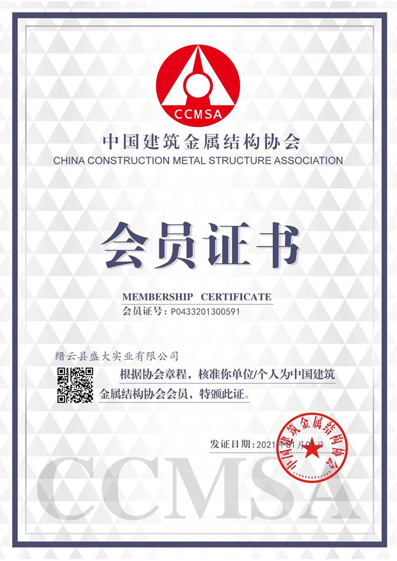 中國建筑金屬結構協會-會員證書