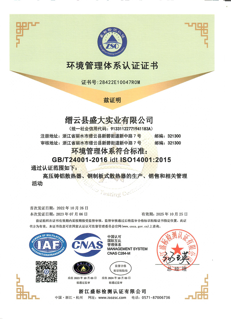 環境管理體系認證證書-中文