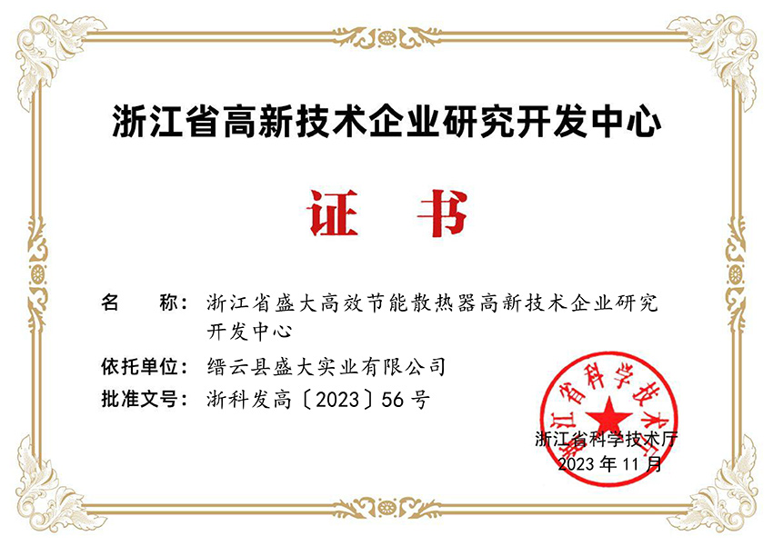 浙江省高新技術企業研究開發中心證書